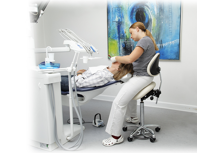 Hvis du f.eks. vælger en saddelstol som klinikstol, har du gode muligheder for at have hænderne fri, samtidig med at du kan flytte dig siddende ved at bruge fødderne.