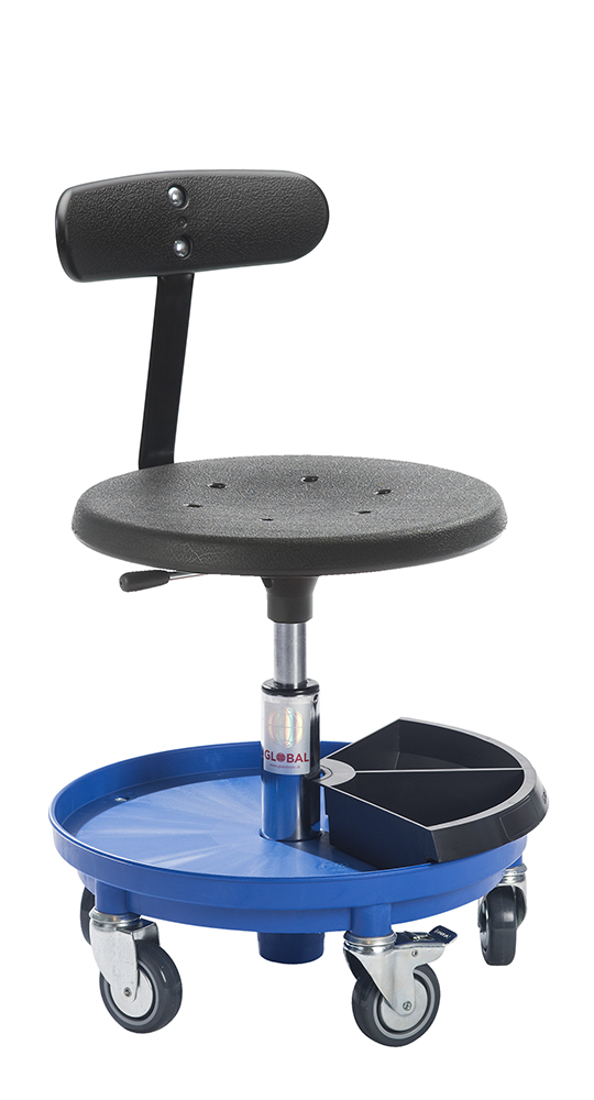 Med store hjul, højdejustering og rygstøtte får du en fleksibel arbejdsstol, der øger både komfort og effektivitet.