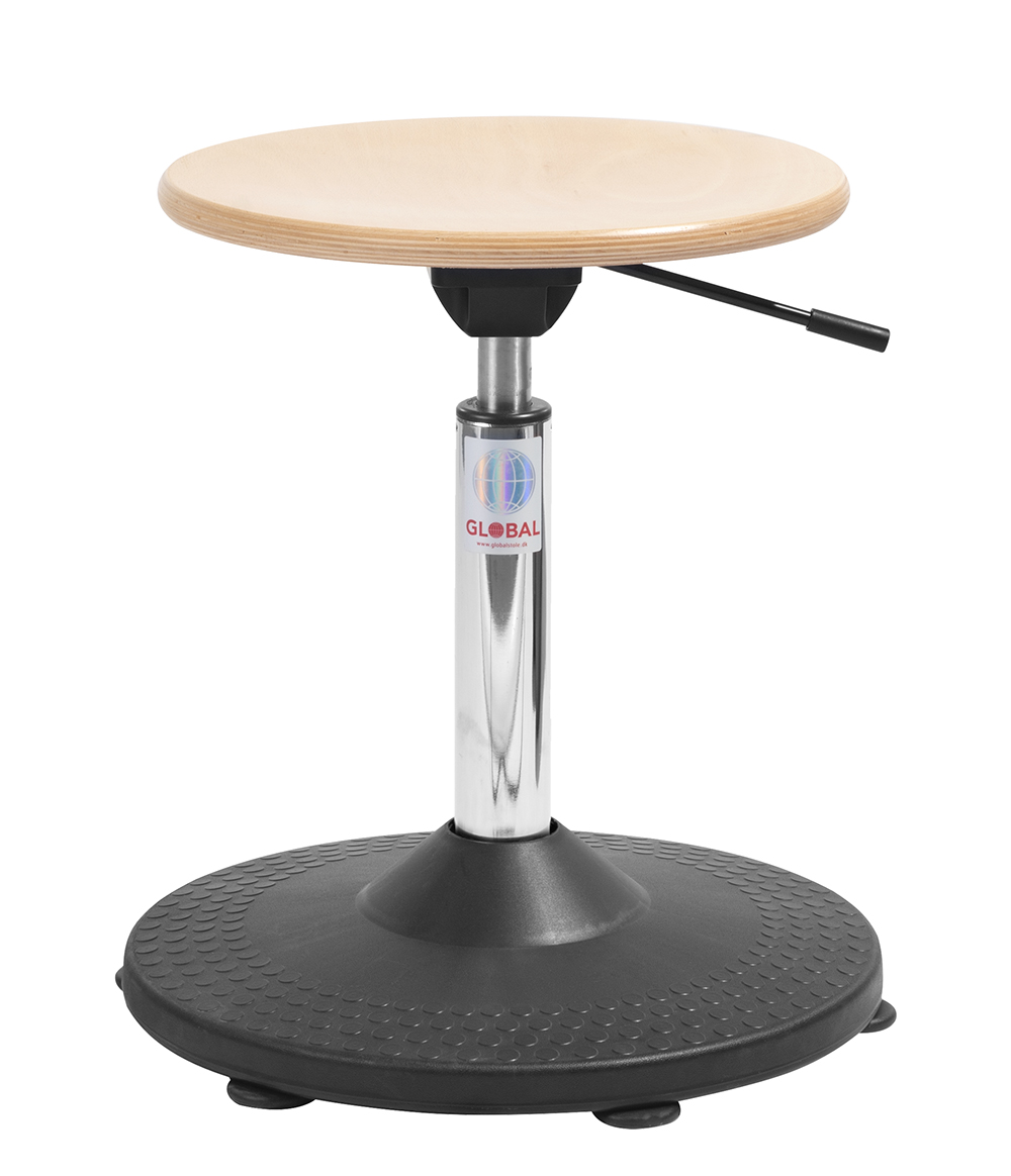 Det formspændte sæde i lakeret plywood er både robust og rengøringsvenligt, hvilket gør taburetten ideel til fx institutioner, klinikker og værksteder.