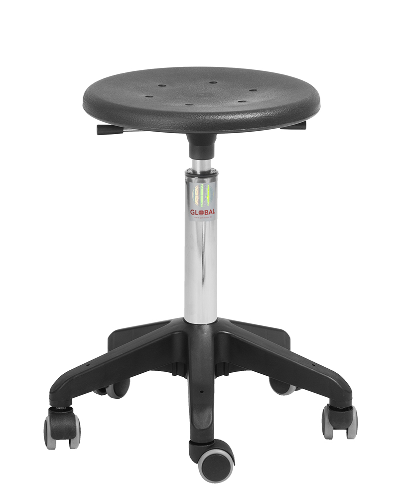 Det formstøbte polyuretansæde giver høj siddekomfort og er samtidig modstandsdygtigt over for væsker og kemikalier – ideelt til industri, værksted og laboratorier.